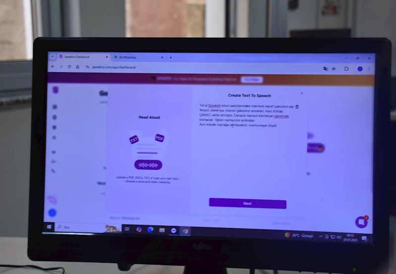 Kentteki hoparlörün bağlı olduğu bilgisayar sistemine yazılan metinler yapay zeka teknolojisi ile seslendirilerek gerçekleşiyor.