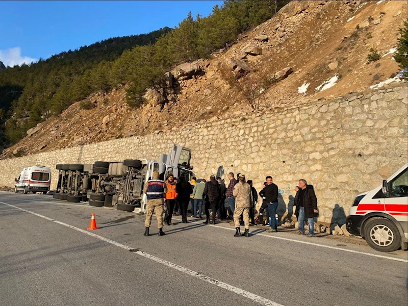 Mehmet Ayçiçek (48) idaresindeki 25 FJ 161 plakalı tır, Budak köyü mevkisinde devrildi.