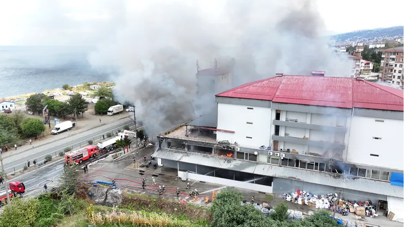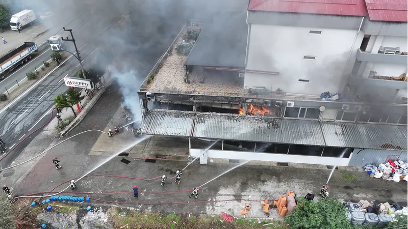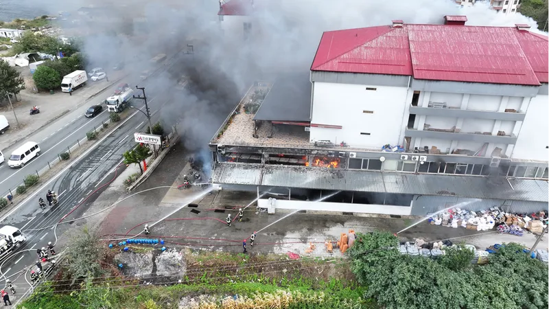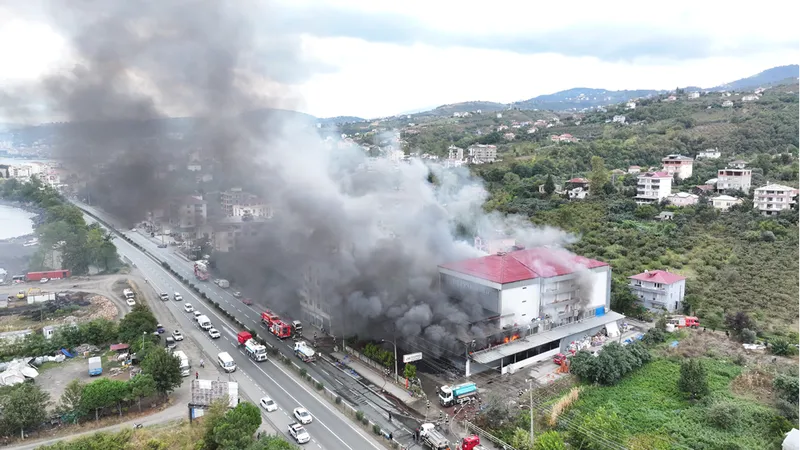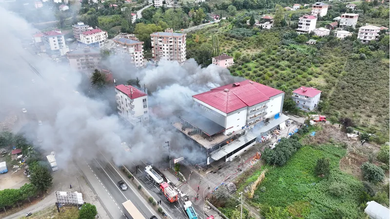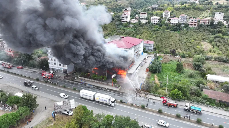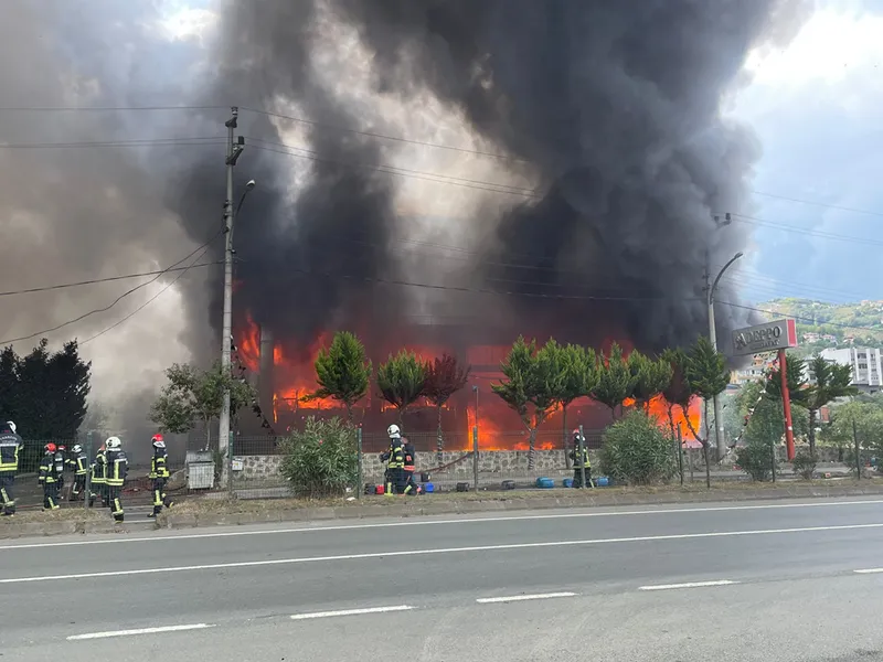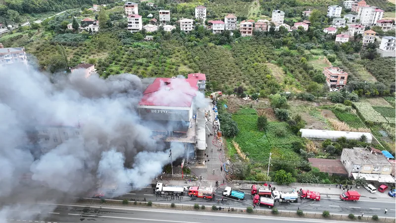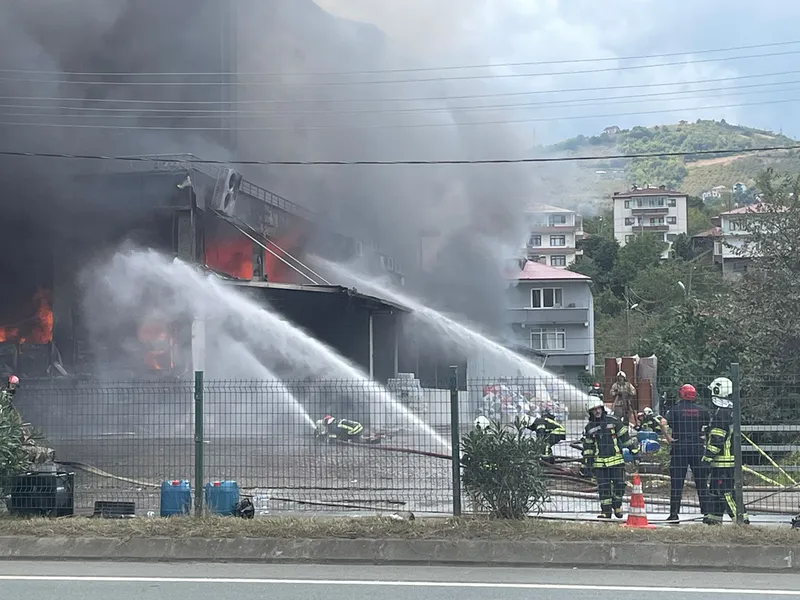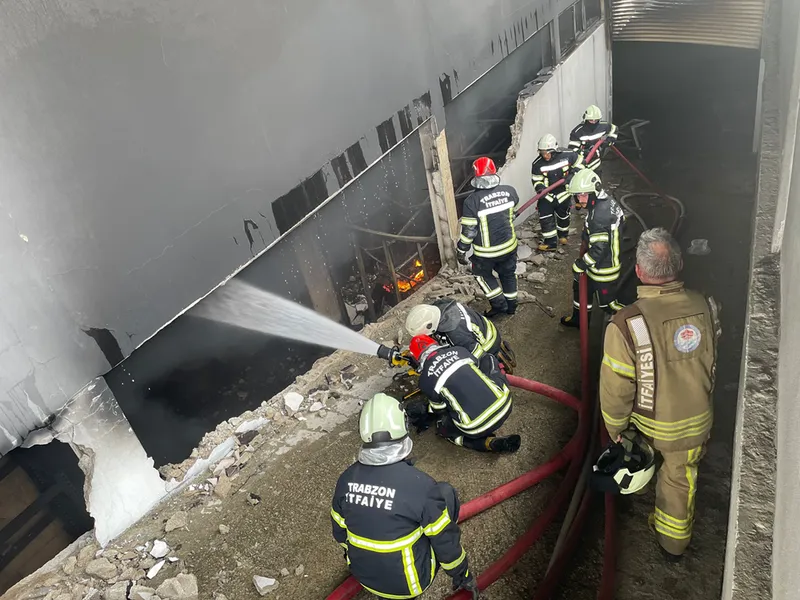 TRABZON (AA) - Trabzon'un Akçaabat ilçesinde hırdavat ve yapı malzemesi satışı yapılan bir alışveriş merkezinde çıkan yangını kontrol altına alma çalışmaları devam ediyor.