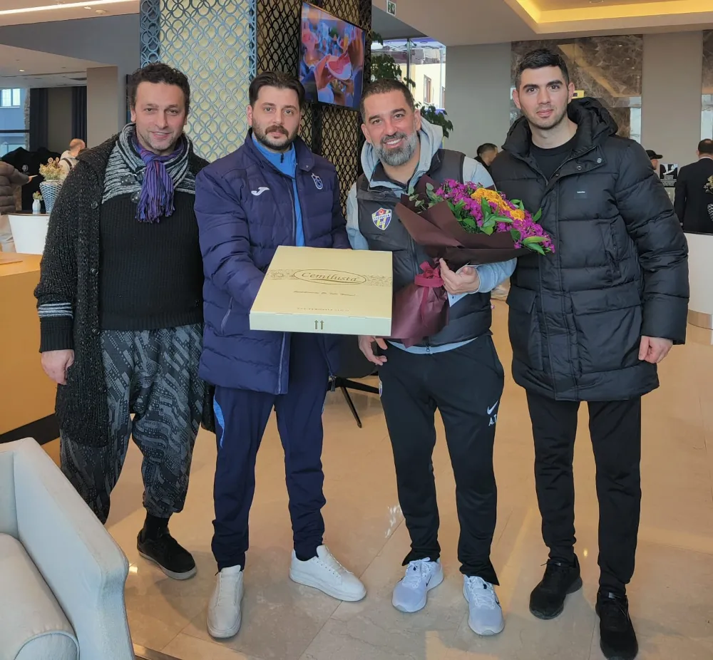 Teknik Direktör Arda Turan'a bir demet çiçek vererek başarılar dileyen ve İyi oynayanın kazanmasını temenni eden Pervanoğlu, futbolculara da bir tepsi baklava gönderdi.