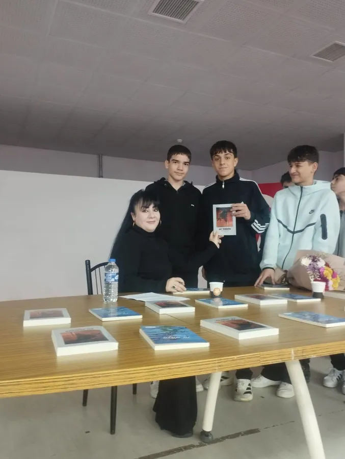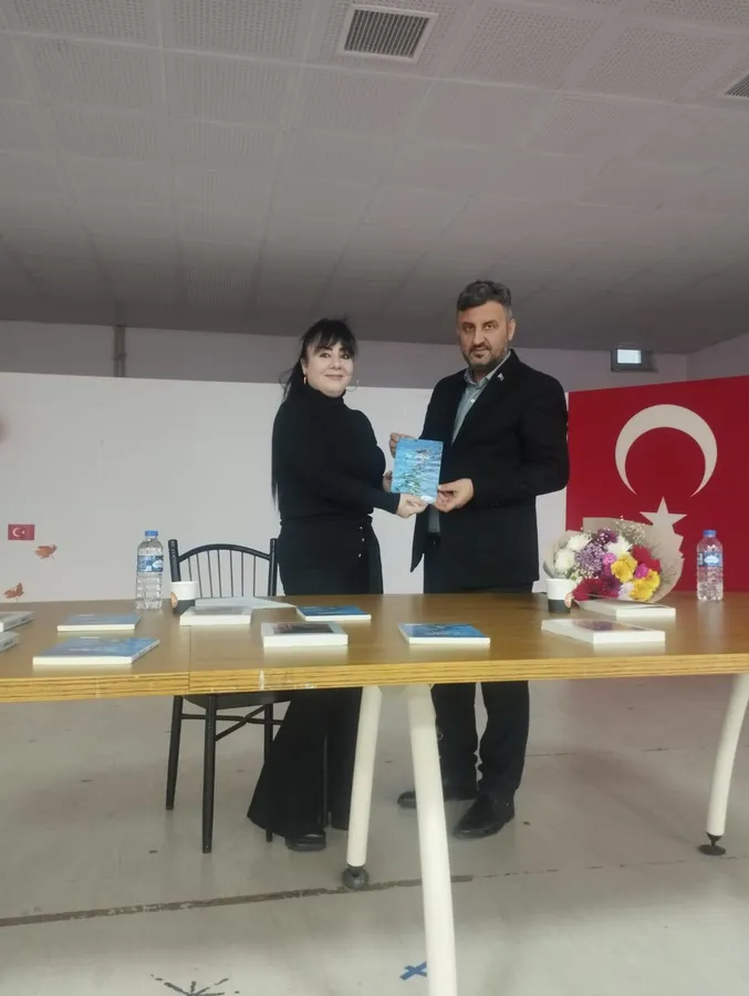 Okulun konferans salonunda yazarlık ve şairlik serüvenini Türk Dili ve Edebiyatı Öğretmeni İbrahim Türk’ün moderatörlüğünde öğrencilere aktaran Filiz Kalkışım Çolak, etkinliğin sonunda da kitaplarını öğrenciler için imzaladı.