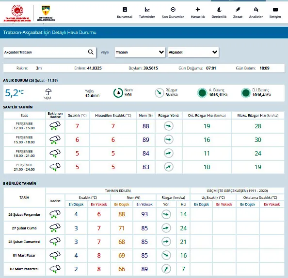•26 Şubat Perşembe: Kuvvetli yağış, 4 derece