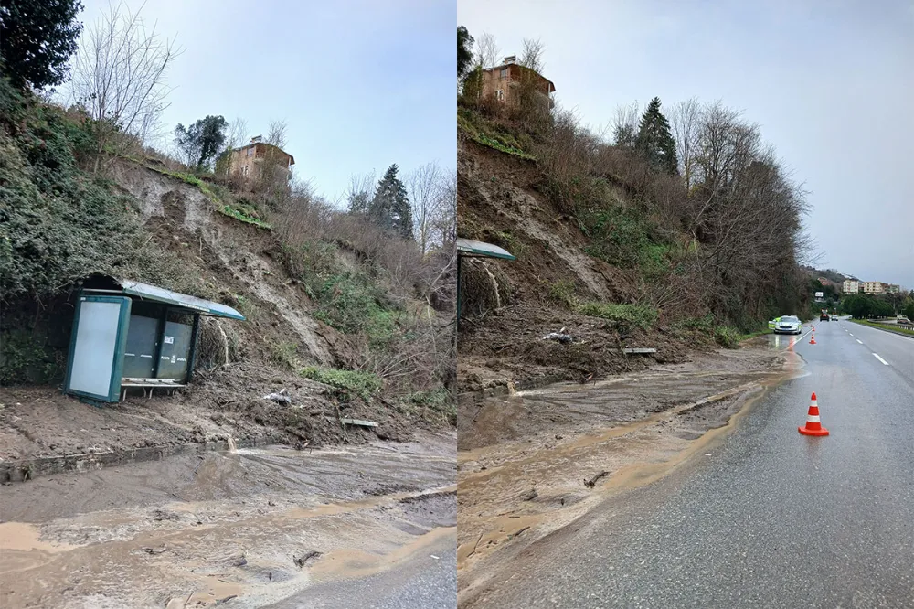 Heyelan nedeniyle yolda çamur birikintileri oluşurken, bölgede ulaşım kontrollü olarak sağlandı. Yetkililer, sürücüleri dikkatli olmaları konusunda uyardı.