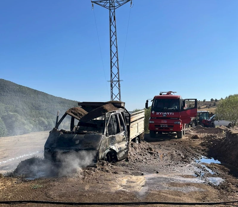 Kamyonetin kullanılamaz hale geldiği yangın, ekiplerin müdahalesiyle söndürüldü.