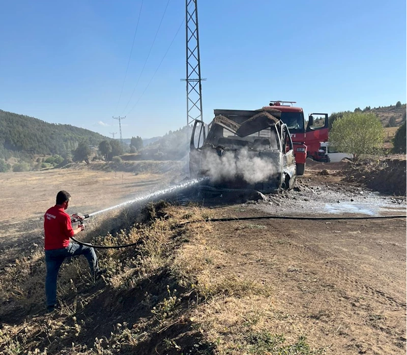 Çalgan köyünün Gölet mevkisinde Halil Kaya yönetimindeki 06 GNL 58 plakalı kamyonette, henüz belirlenemeyen nedenle yangın çıktı.