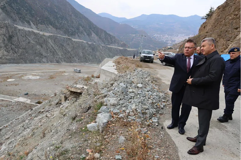 Vali Ergün ve Çelik, çalışmalarla ilgili Artvin Livane Küçük Sanayi Sitesi Yönetim Kurulu Başkanı Kurtul Özel'den bilgi aldı.