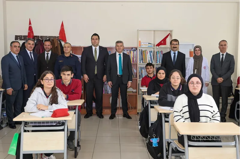 Ergün, beraberindeki İl Milli Eğitim Müdürü Fahri Acar ile ziyaret ettiği okulda, öğretmen ve öğrencilerle bir araya geldi.