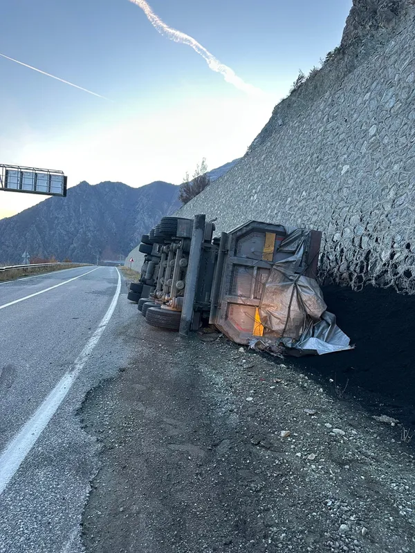 Artvin-Yusufeli kara yolunun Zeytinlik köyü mevkisinde H.B. yönetimindeki 61 KG 984 plakalı kömür yüklü tır, sürücüsünün direksiyon hakimiyetini kaybetmesi sonucu kontrolden çıkarak yolun sağına devrildi.