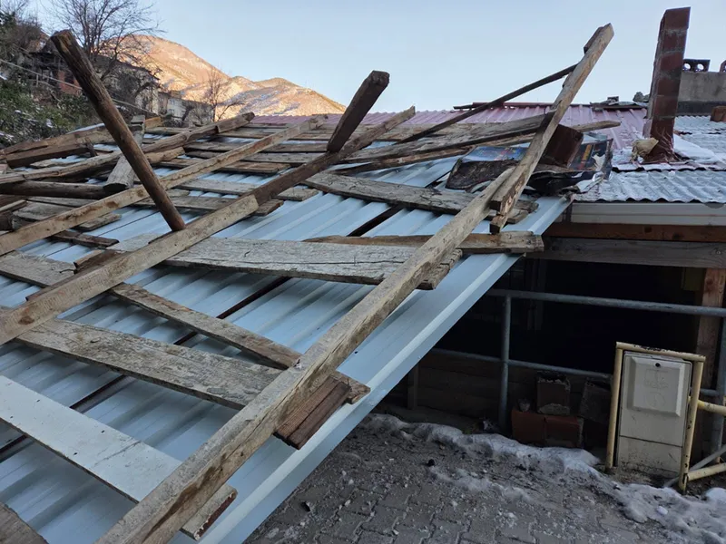 Orta Mahalle'deki bir evin çatısı, kuvvetli rüzgarın etkisiyle yerinden koparak savruldu. Çatının bir bölümü, sokakta park halindeki otomobile zarar verdi.