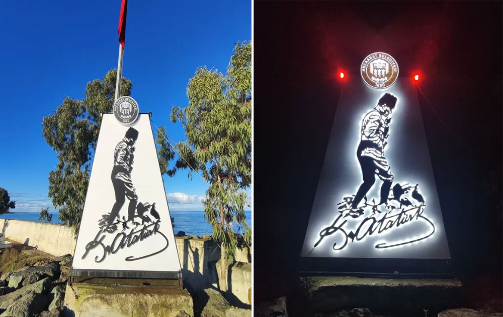 Akçaabat Limanı’nın simgelerinden biri olan Atatürk portresi, yenilenerek modern ve ışıklı bir görünüme kavuşturuldu. Zamanla deforme olan ve kısım kısım kopmaları nedeniyle Atatürk’e benzerliğini yitirdiği ifade edilen eski portre, Akçaabat Belediyesi tarafından yapılan çalışma ile tamamen kaldırılarak yerine çağdaş bir tasarım yerleştirildi.