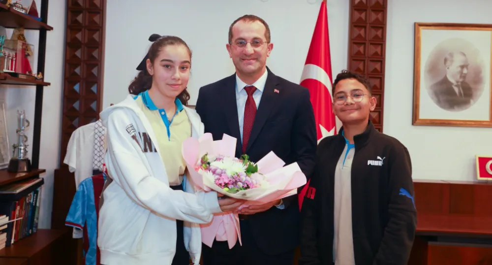 Başkan Osman Nuri Ekim’in eğitim ve öğretime verdiği destek ile okulun spor sahasının yapımına sağladığı katkı nedeniyle gerçekleştirilen teşekkür ziyaretinde Okul Müdürü Mehmet Çolak ile Beden Eğitimi Öğretmeni Coşkun Gedikli ve öğrenciler hazır bulundu.