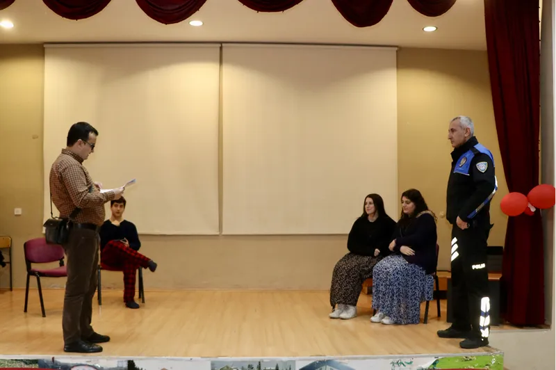 Trabzon Emniyet Müdürlüğü Toplum Destekli Polislik Şube Müdürlüğünce Çocuk ve Gençler Sosyal Koruma ve Destek Programı (ÇOGEP) kapsamında, 88. Yıl Cumhuriyet Anadolu Lisesi'nde öğrenim gören 16 öğrencinin rol aldığı tiyatro oyunu hazırlandı.