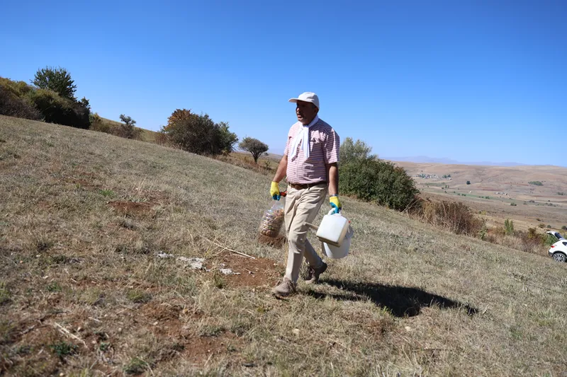 BAYBURT (AA) - BEŞİR KELLECİ - Bayburt’ta yaşayan Fransızca öğretmeni Hasan Kaymaz, 21 yıldır köyündeki çorak ve dağlık arazilere ağaç tohumları dikerek doğaya katkı sağlıyor.