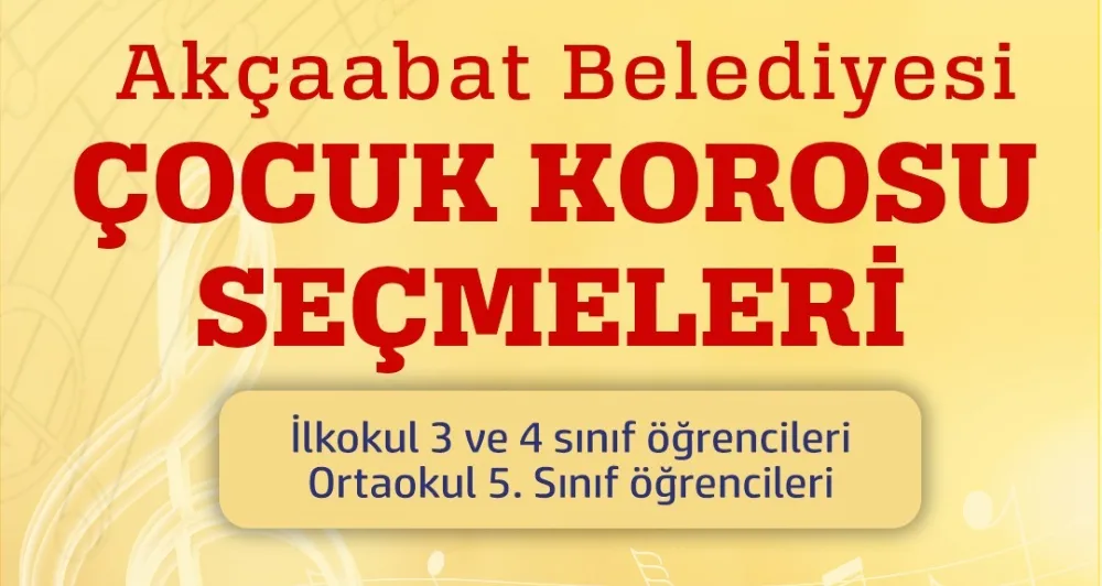 Akçaabat Belediyesi, çocukların sanatsal gelişimine katkı sunmak, müzik yeteneklerini ortaya çıkarmak ve sahne disiplinini küçük yaşta kazandırmak amacıyla Çocuk Korosu Seçmeleri için başvuru sürecini başlattı.