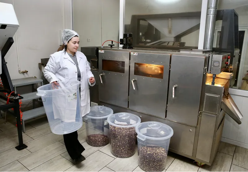 Batlama Sanayi Sitesi'nde 2023 yılında iş yerini kuran Gemici, fındığı işleyip ezme, krokan ve iç fındık gibi ürünlere dönüştürüyor.
