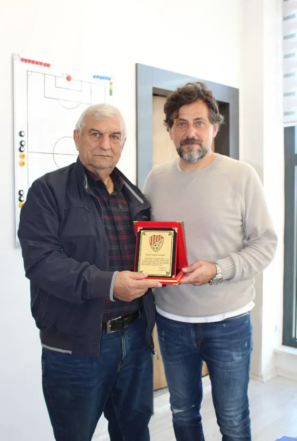 Daha sonra Teknik Direktörümüz Turgay Karslı ile görüşen Balaban ve beraberindeki heyet, ‘Terlemeden Büyüyen Çocuklar Projesi’ne verdiği katkılardan dolayı Teknik Direktörümüz Karslı’ya çiçek ve plaket verdi.