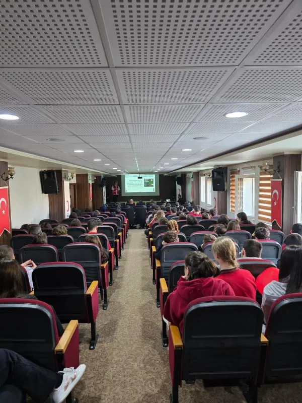 Şube Başkanı Saadettin Balcı ile Doğu Karadeniz Bölge Kan Merkezi Müdürü Dr. Dila Baran tarafından gerçekleştirilen sunumda öğrenciler, Kızılay’ın misyonu ve gönüllülük faaliyetleri hakkında kapsamlı bilgi edinme fırsatı buldu.