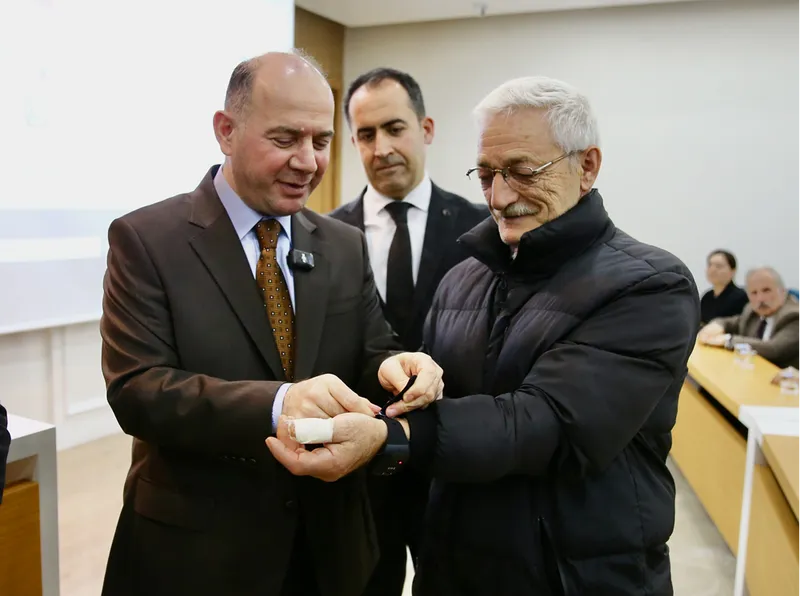 Konuşmanın ardından Serdengeçti, Giresun Üniversitesi Rektörü Prof. Dr. Yılmaz Can ve Vali Yardımcısı Mehmet Fatih Yakınoğlu, 100 akıllı bilekliği vatandaşlara dağıttı.