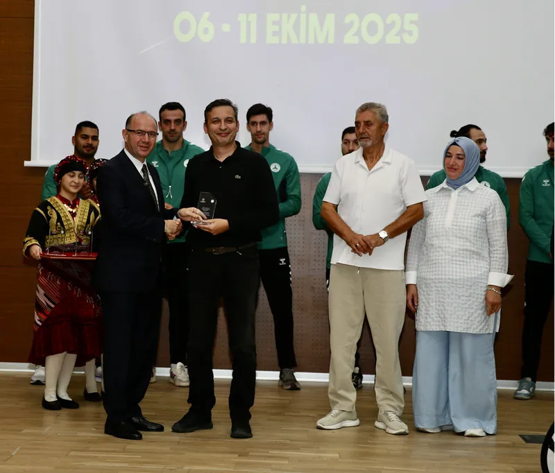 Amerikan Basketbol Ligi'nde (NBA) forma giyen milli oyuncu Alperen Şengün'ün babası Kemal ve annesi Ayşe Şengün'e plaket takdim edilen törende, başarı gösteren spor kulüpleri, sporcular, antrenörler ve okullara ödül verildi.