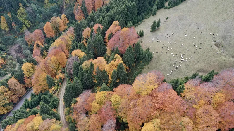 Dereli ilçesinde sonbaharla birlikte ormanlık alanlardaki ağaçlar sarı ve yeşilin tonlarına büründü.