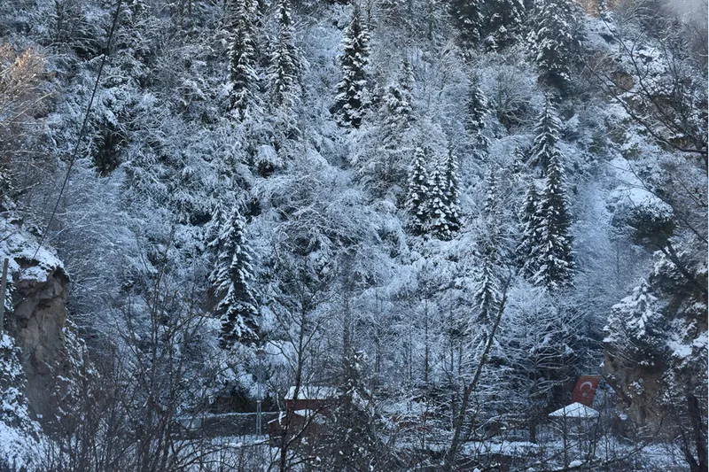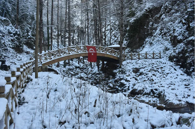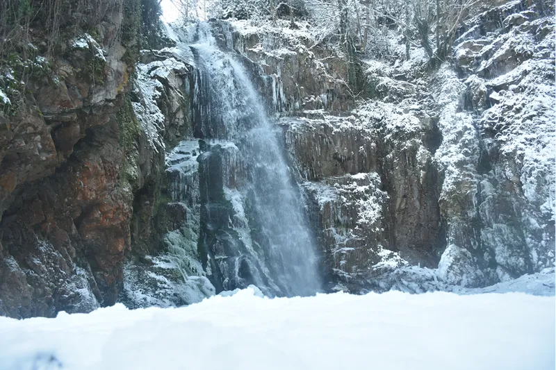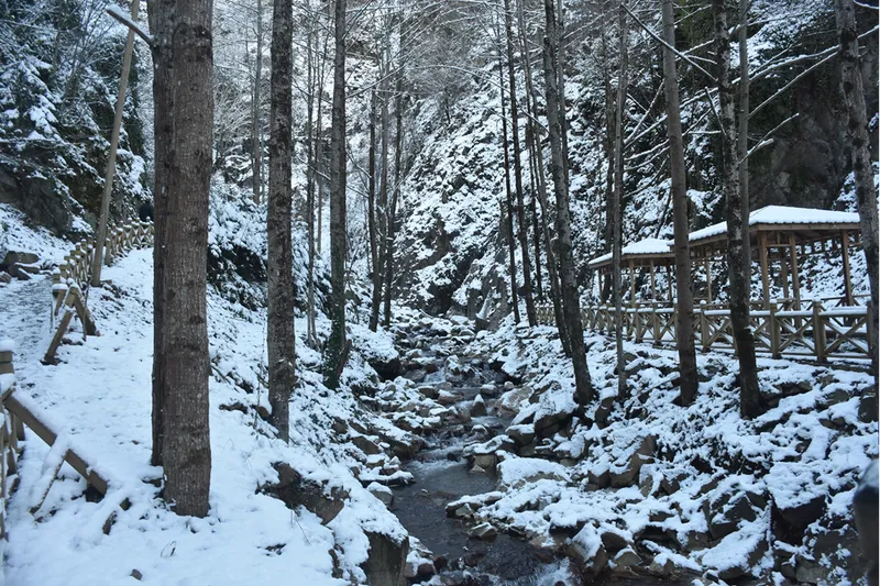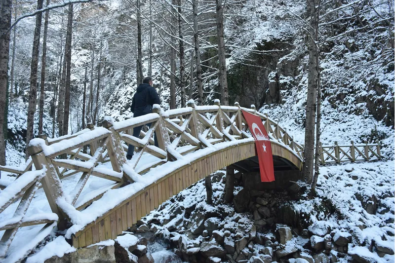 Bölgede son günlerde aralıklarla etkili olan yağışla beyaza bürünen Çağlayandibi Şelalesi Tabiat Parkı, her mevsim ziyaretçilerin ilgisini çekiyor.