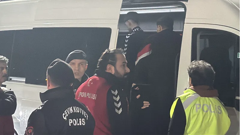 Takım otobüsünü taşladıkları iddiasıyla maçın ardından kimlikleri tespit edilen S.A. (18), A.Ş. (19), A.B. (15), U.K. (17), E.G. (17) ile T.C.U. (16) stat çıkışında gözaltına alındı.