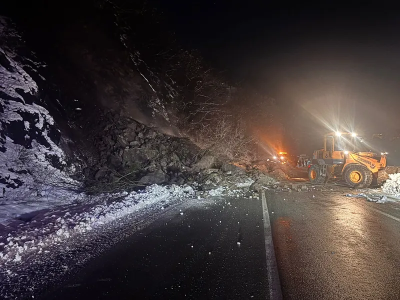 Heyelan nedeniyle kara yolu çift yönlü ulaşıma kapandı. Yaklaşık 1,5 saat ulaşıma kapanan yolda araç kuyruğu oluştu.
