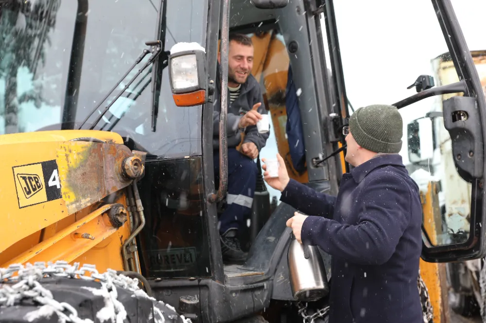 Gece gündüz demeden çalışan mesai arkadaşlarıyla birlikte kar küreme çalışmalarına bizzat katılan Akçaabat Belediye Başkanı Osman Nuri Ekim, karla mücadeleyi başarıyla sürdüren çalışma arkadaşlarına kendi elleriyle ikramda bulundu