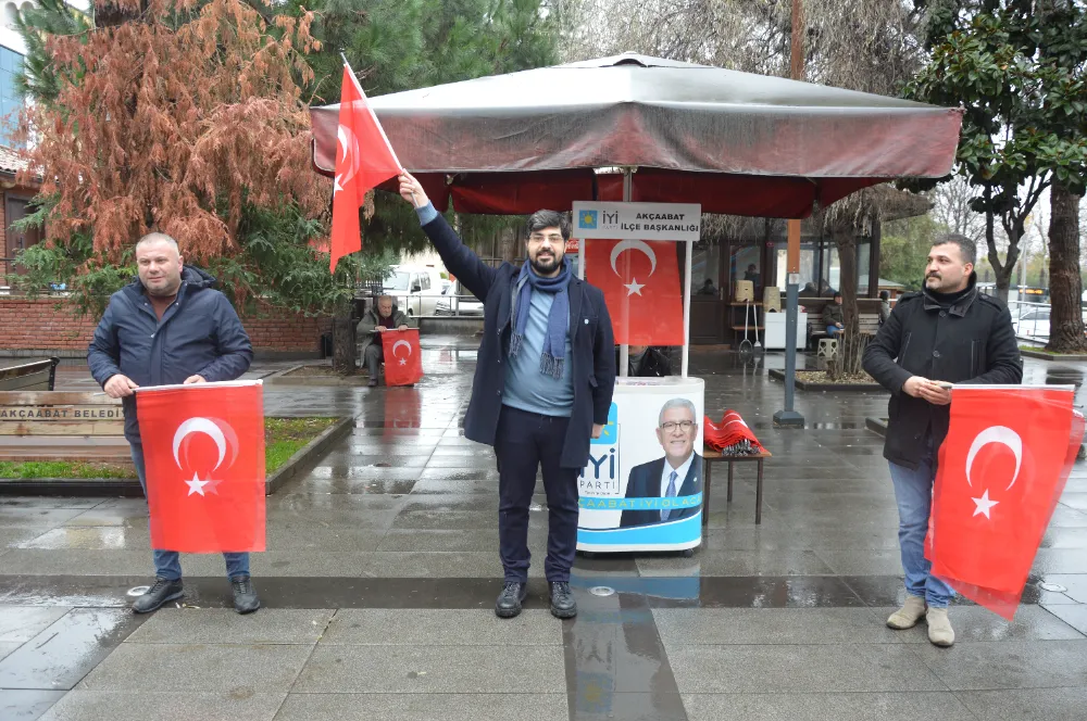 İYİ Parti Akçaabat İlçe Teşkilatı, Mardin’in Nusaybin ilçesinde Türk bayrağına yönelik gerçekleştirilen saldırıya dikkat çekmek amacıyla anlamlı bir etkinlik düzenledi. İlçe teşkilatı, Atatürk Parkı’nda vatandaşlara Türk bayrağı dağıtarak hem tepki gösterdi hem de milli değerlerimize sahip çıkılması mesajı verdi.