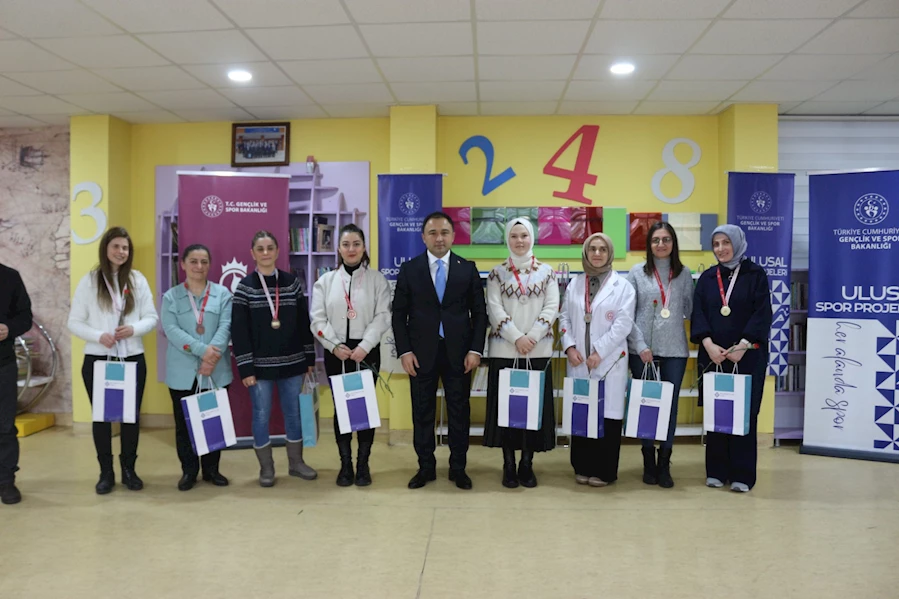 Törende Dünya Kadınlar Günü münasebetiyle katılan kadın sporculara karanfil verildiği turnuvada dereceye giren takımlar şunlar: