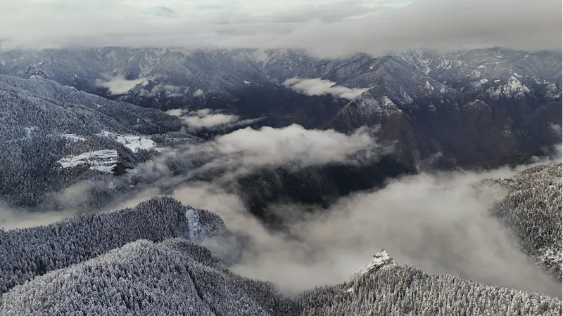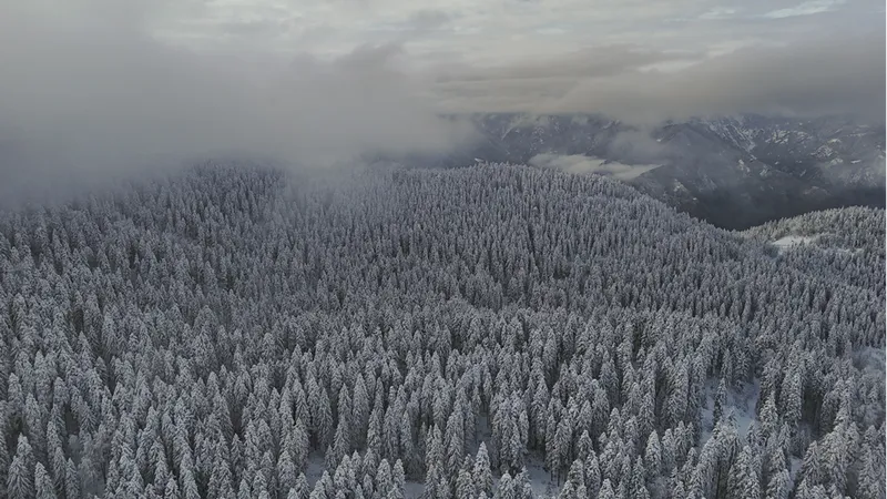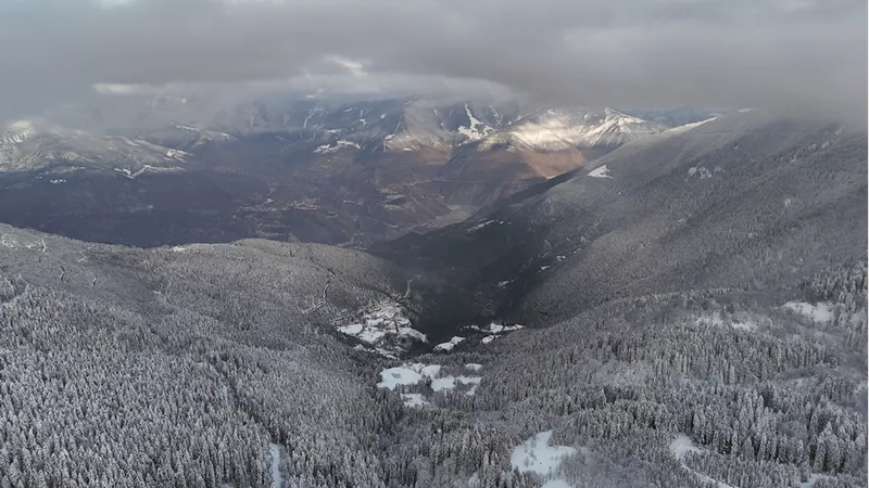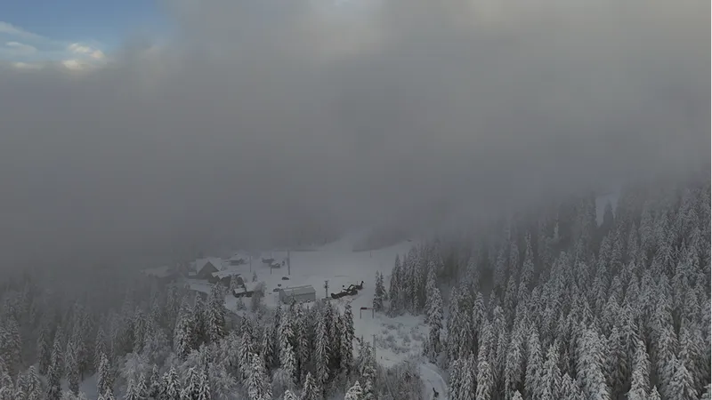 Beyaz örtüyle kaplanan deniz manzaralı yayla, bulutlar arasından misafirlerine güzel görüntüler sunuyor.
