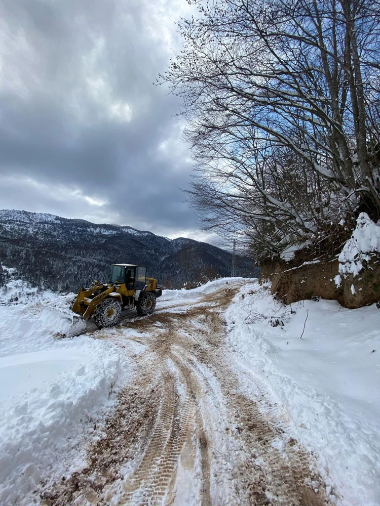 Belediye ekiplerinin cadde ve sokakları temizlediği ilçede, Karayolları ekipleri ise ulaşımda aksama yaşanmaması için sorumluluk alanlarındaki yollarda küreme ve tuzlama yapıyor.