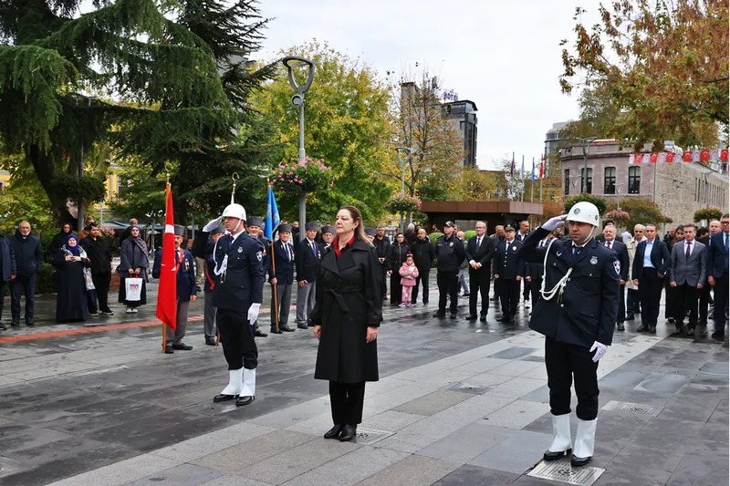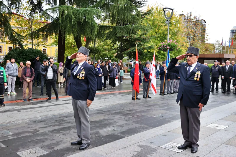 Ortahisar ilçesindeki 15 Temmuz Şehitleri ve Hürriyet Parkı'nda organize edilen törende, KKTC Trabzon Başkonsolosu Fatma Demirel ve Türkiye Muharip Gaziler Derneği Trabzon Şube Başkanı Seyyah Sağıroğlu, Atatürk Anıtı'na çelenk sundu.