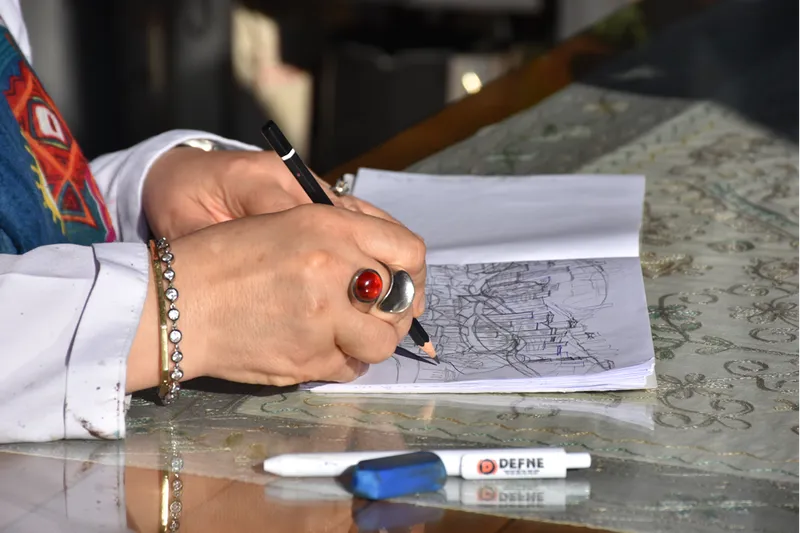 Şehrin doğasının, yaptığı eserler için çıkış noktası olduğunu vurgulayan Eroğlu, "Her bakış, her gözlem bir tabloya dönüşebiliyor. Kalple, gözle, beyinle bunları önce kağıda işliyorsun." diye konuştu.