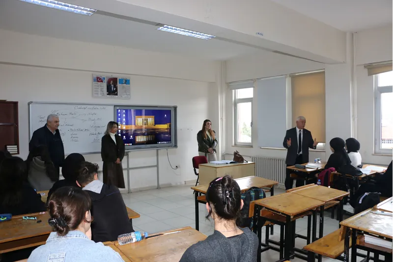 Kabahasanoğlu, beraberindeki Şube Müdürü Canan Çolak Seymen ile ziyaret ettiği okulda Müdür Ahmet Kayıkçı ve öğretmenlerle görüştü.