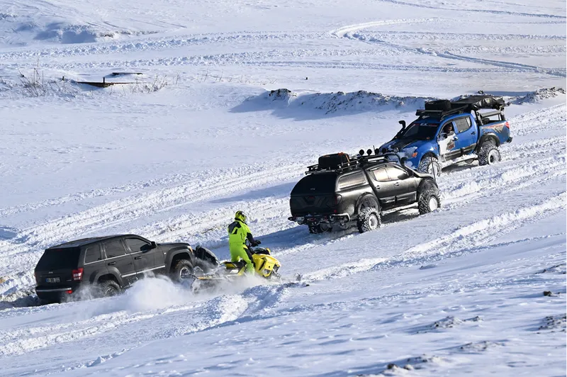 Atakan Akın ise yaylanın adeta doğal bir pist oluşturduğuna değinerek, "Araçlarımızda vinçlerimiz var. Kendimizi gerektiği zaman kaldığımız yerlerden çıkarabiliyoruz." dedi.