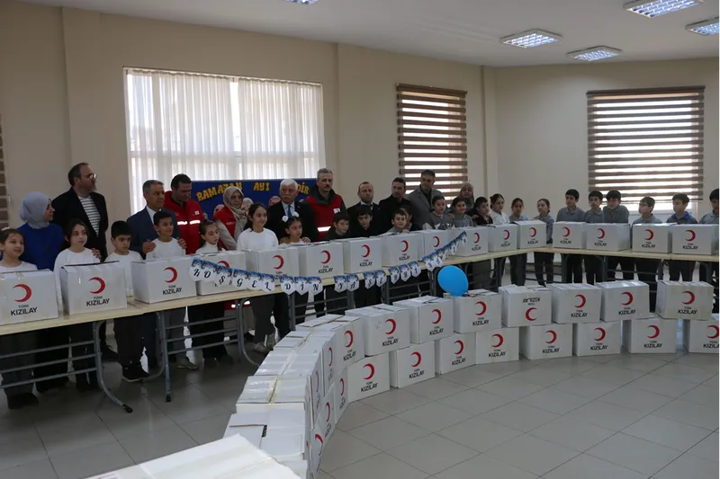 Konuşmaların ardından hazırlanan gıda kolileri Kızılay yetkililerine teslim edildi.