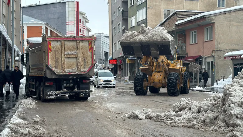 Bayburt'ta etkili olan kar yağışının ardından kaldırımlar ve yollarda biriken karlar, kamyonlarla şehir dışına taşınıyor.