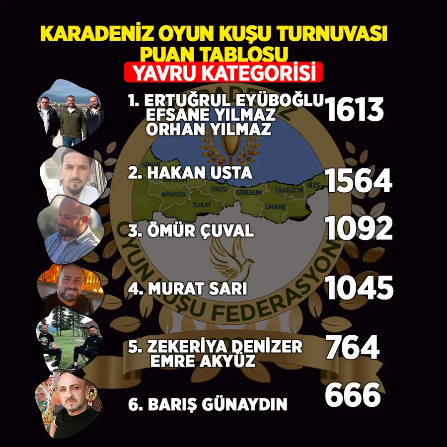 Sinop, Samsun, Amasya, Tokat, Ordu, Giresun, Gümüşhane ve Rize ve Trabzon’daki kuşçuların üst kuruluşu olan Karadeniz Oyun Kuşu Federasyonu’nun organize ettiği yarışmada birincilik kupası Akçaabat’a geldi.
