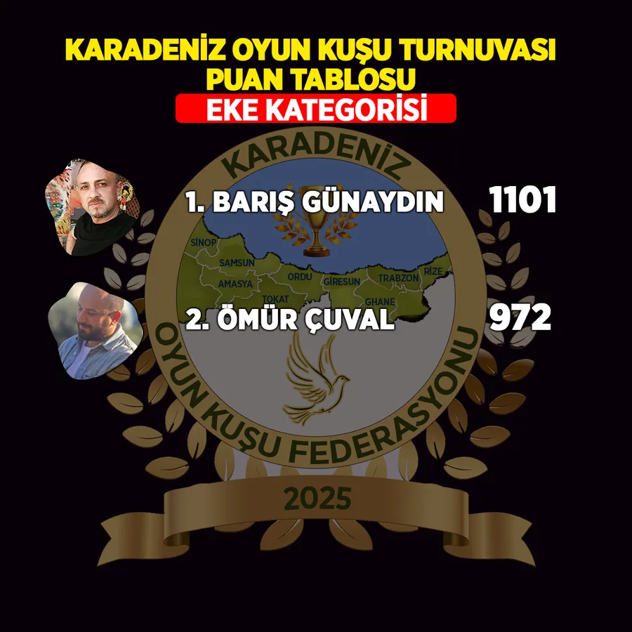 Akçaabatlı Barış Günaydın’ın “Toprak” isimli güvercini “Eke” yarışmasında 1101 puanla birinci olurken, “Yavru” yarışmasında da 666 puanla beşinci oldu.
