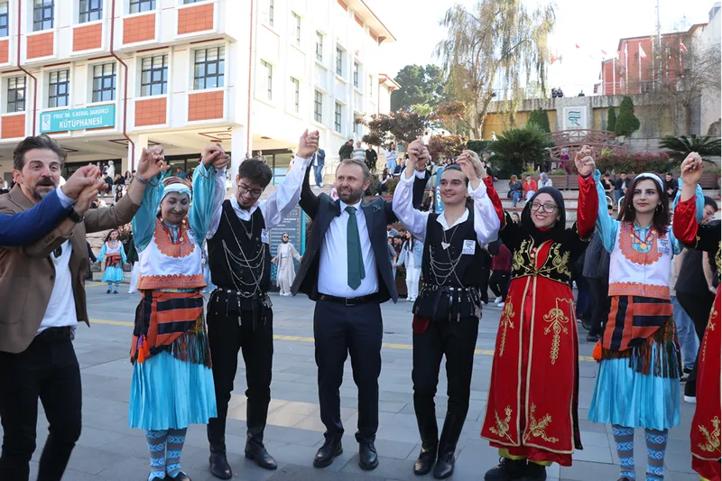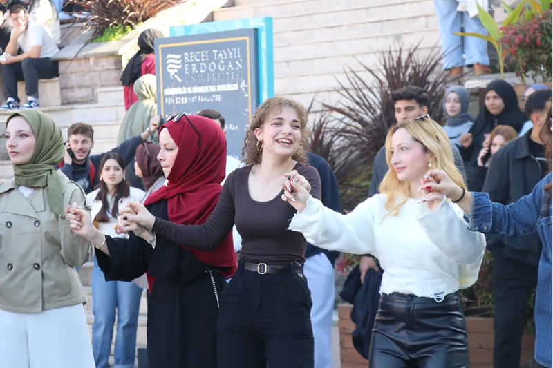 Renkli görüntülerin oluştuğu şenliğe katılan Prof. Dr. Yusuf Yılmaz, öğrencilerin daveti üzerine horona katıldı.