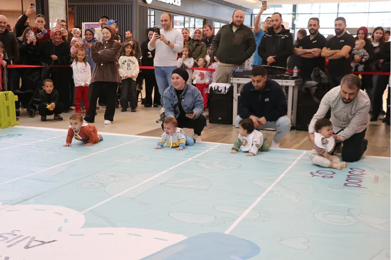 Başlangıç çizgisinden emekleyerek anne ve babalarına ulaşmaya çalışan bebekler, ailelerinin gösterdiği oyuncak, biberon ve telefonla varış alanına ilerlemeye çalıştı.