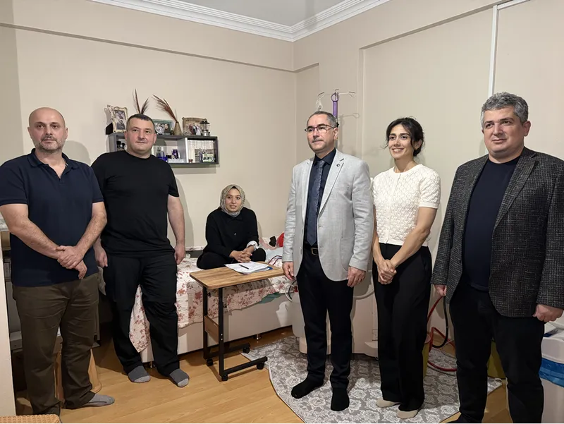 İl Sağlık Müdürü Gökhan Demiral ile Recep Tayyip Erdoğan Üniversitesi Eğitim ve Araştırma Hastanesi Nefroloji Bölümü Ana Bilim Dalı Başkanı Prof. Dr. Ekrem Kara, evde hemodiyaliz tedavisi uygulamasından yararlanan Eda Gül Genç'i İslampaşa Mahallesi'ndeki evinde ziyaret etti.