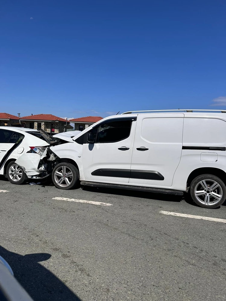 Merkez Mahallesi'nde A.H'nin (36) kullandığı hafif ticari araç ile N.K. (23) yönetimindeki yabancı plakalı otomobil çarpıştı.