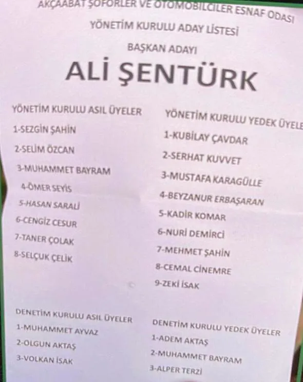 Sandıkların açılması ve sayım işlemlerinin tamamlanmasının ardından Akçaabat Şoförler ve Otomobilciler Odası’nın yeni başkanı yeniden Ali Şentürk oldu.