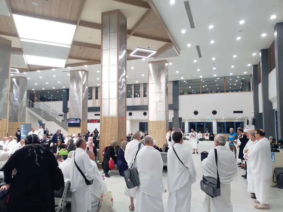 Aileleriyle veda eden umrecilerin heyecanları ve mutlulukları her hallerinden belli oluyordu.