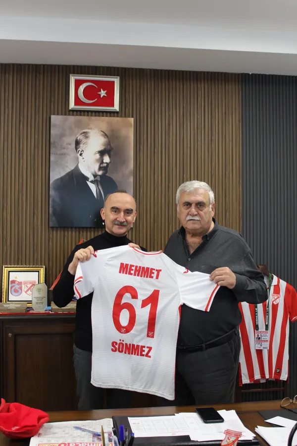 Kulüp Başkanı Atalay Armutçu tarafından ağırlanan ikiliden Sönmez’e takımımızın bu yılki forması hediye edilirken, eski yöneticilerimizden Temel Kazancıoğlu da kulübümüzün Süper Lig’de mücadele ettiği dönemden kalan formamızı kulüp müzesine hediye etti.