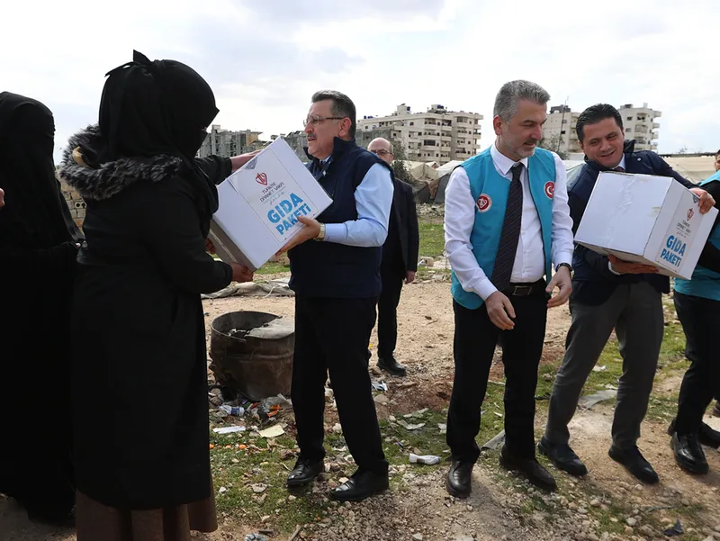 Türkiye Diyanet Vakfınca organize edilen yardım dağıtımına katılan heyet, kampta yaşayanlarla sohbet etti, ramazanlarını kutladı.