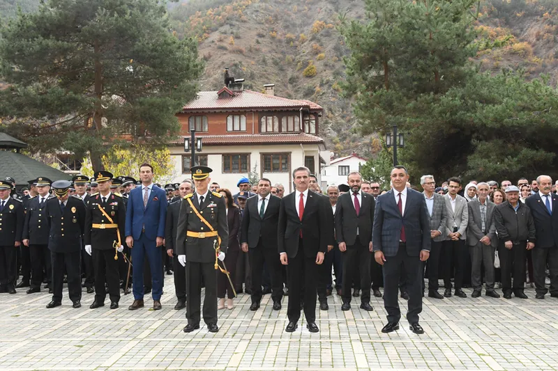 Tören, Vali Mehmet Fatih Serdengeçti, Belediye Başkanı Fuat Köse ve Garnizon Komutanı İkmal Albay İbrahim Erdinç Yalçın'ın Atatürk Anıtı'na çelenk sunmasıyla başladı.