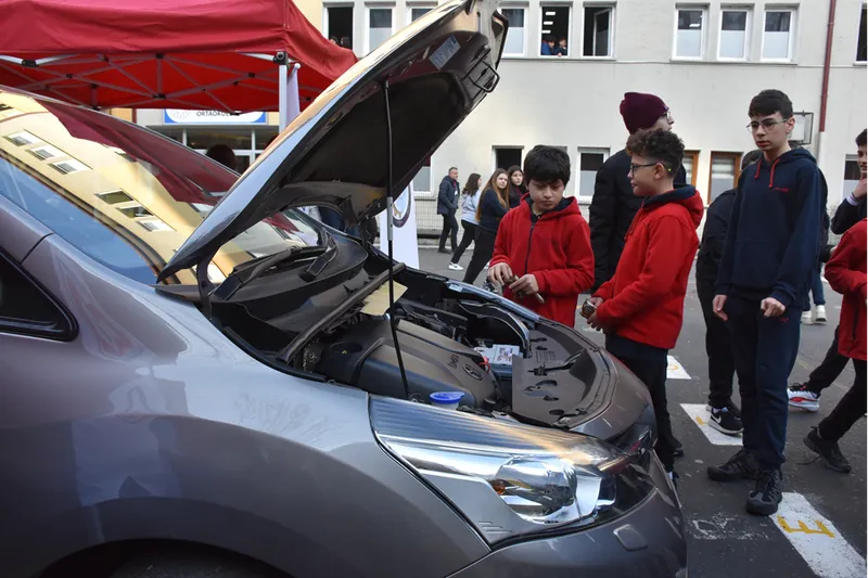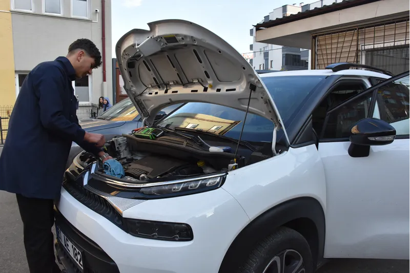 Bu kapsamda öğrenciler, okulda öğrendiklerini öğretmenlerinin, servislerin ve diğer resmi araçların antifriz, fren lambası, silecek suyu, boya kalınlığı, yağ, lastik diş derinliği, far, sinyal, fren ve geri viteslerini kontrol ederek pratiğe döküyor.